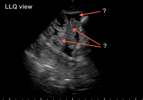 Extensive third spacing from resuscitation has resulted in bowel edema and ascites. Another “benign” effect of massive crystalloid use… A bedside 22g US guided tap confirms benign transudate.