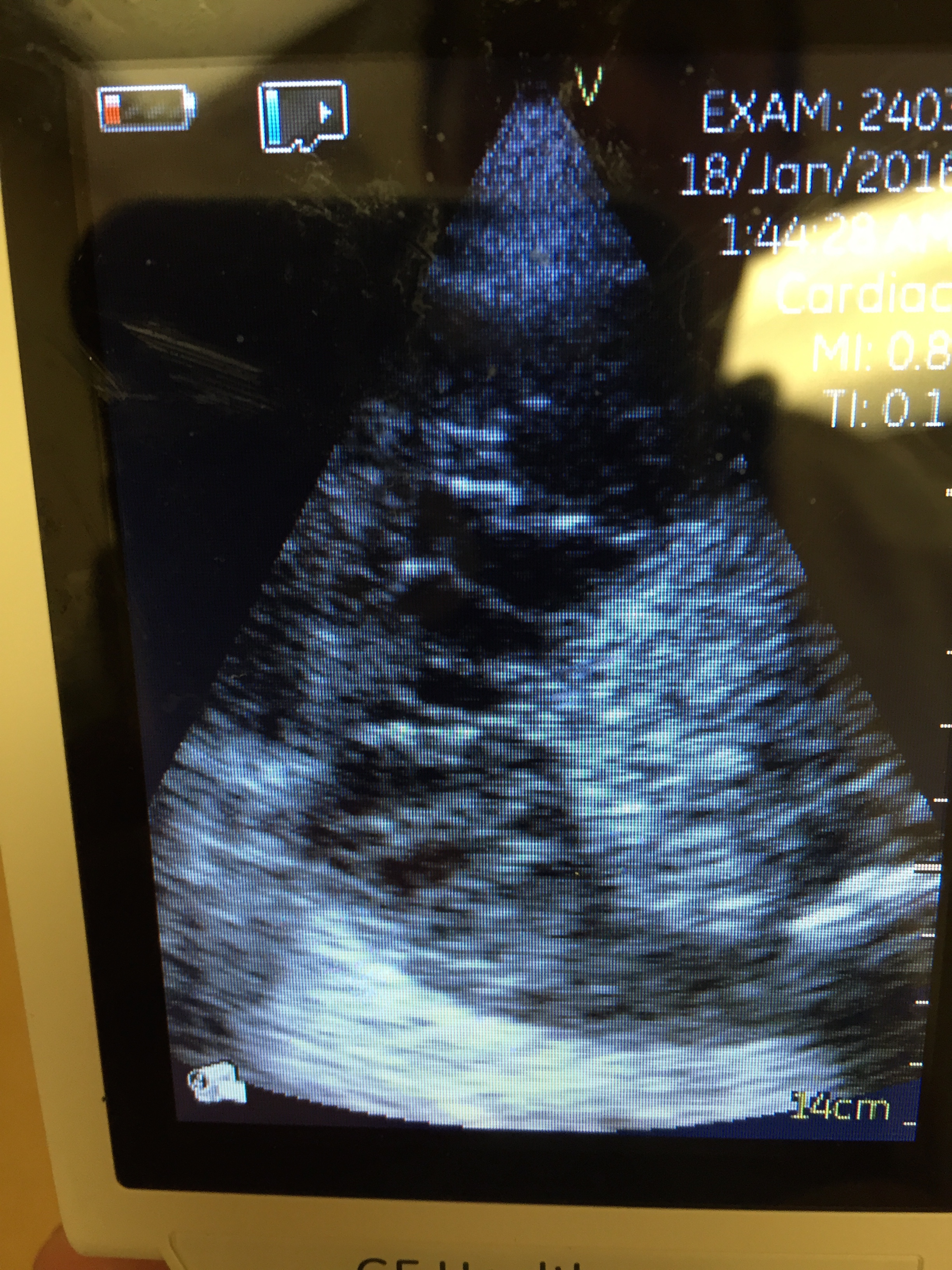 Still, should they have “called it”? POCUS does another wonderful thing. It asks the clinician to touch their patient. Rather than being the acute care quarterback (often recording the nurses vital signs rather than performing their own) who orders “STAT ECG, CKs, troponins, and get cardiology here to do an echo” the POCUS able clinician spends a few more seconds examining and speaking to the patient, often offering the patient more clinical information quickly.
