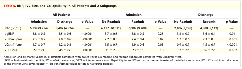 Goonewardena et al had a really great observational study that showed that if CHF patients were discharged with a non-plethoric IVC and significant respiratory variation, they were less likely to be re-admitted. The figure below on the right shows the numbers: