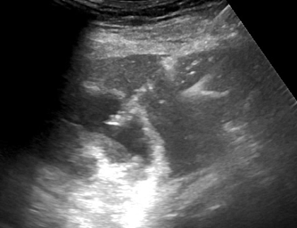 This is the case of a 90 year old man with severe aortic stenosis and a perforated cholecystitis with sepsis (AKI, delirium, coagulopathy) admitted to our ICU. Due to the aortic stenosis, surgical mortality was felt to be quite elevated, hence a percutaneous procedure was done.