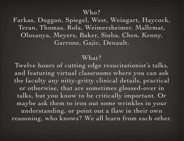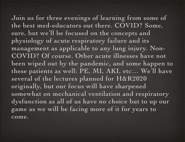 So you can join us during H&R Reloaded’s Virtual Hangout Room and discuss this and a bunch of other skills or strategies involved in critical care and try to tease out the details from Korbin and the rest of our amazing faculty!